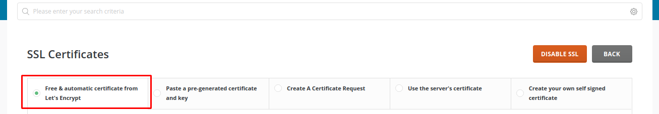 Переключитесь на вкладку "Free & automatic certificate from Let's Encrypt":